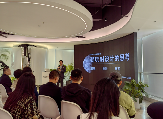 2月18日下午,中国地质大学深圳研究院、深圳市金银珠宝创意产业协会、大芬油画艺术协会联合主办、德必水贝WE承办的《潮玩设计与潮玩市场》公益课堂在罗湖德必水贝WE城市花园空中会客厅顺利举办。本次课堂特邀凯特创意总经理吴晓斌、点亮艺术总经理方南海、雅今文化联合创始人周奇、怒宝IP创始人冯冬明4位潮玩界大咖进行潮玩主题的分享,百余位来自不同行业的各界朋友参加本次公益课堂。潮玩IP SPACEMINI创始人吴晓斌作为首位登场的演讲嘉宾,介绍了当下潮玩市场的发展状况以及潮玩行业的商业模式。他表示,潮玩的核心要素还是IP本身,如何开发出能获得持续流量的IP并加大周边产业布局,通过跨界联名以及IP授权的方式为IP引流,才是未来发展之道和运营之道。潮玩壹号创始人方南海围绕“设计”这一关键词展开,分析了设计在潮玩中所占有的比重。并对潮玩行业的未来发展做出预测,人们对精神需求的不断提升将会推动潮玩行业的快速发展,在健康、稳定中成长的00后必定会诞生一大批优秀的潮玩设计师和原创IP,未来十年依旧是潮玩市场的红利期。雅今文化联合创始人周奇所带领的团队则将潮玩与元宇宙相结合,通过元宇宙中的虚拟场景为用户提供大量互动玩法,借助元宇宙的功能为潮玩带来新的生命。